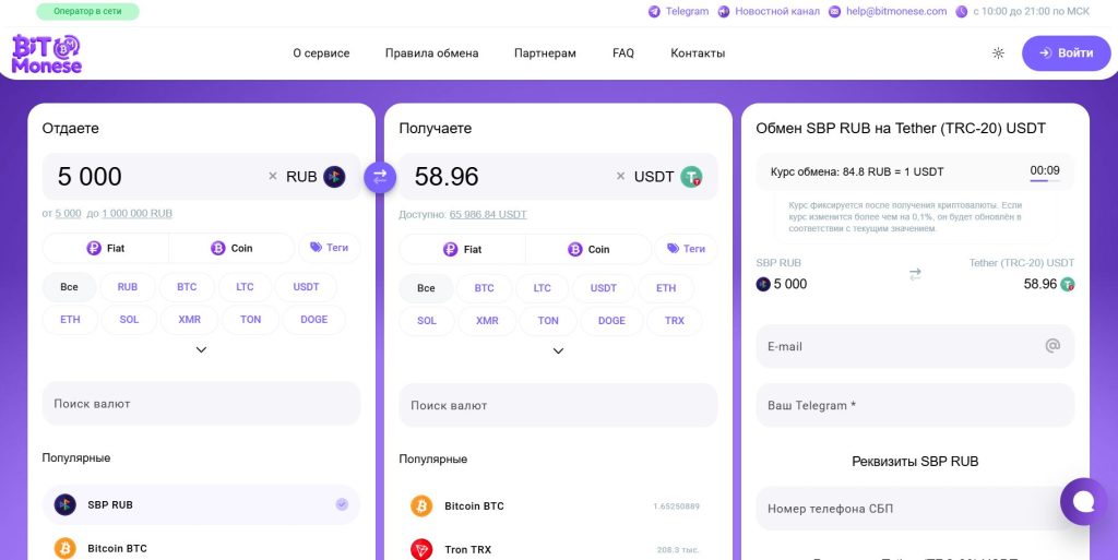 Время — один из самых важных факторов при работе с криптовалютами. Bitmonese обеспечивает максимально быстрый обмен, что особенно важно при колебаниях курсов.
