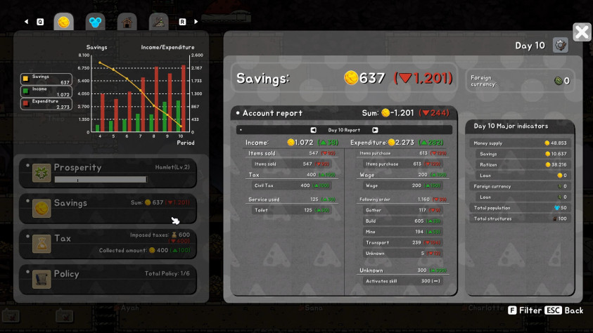 С ростом поселения светлое и наивное желание подарить своим крысятам утопию тает на глазах. Во-первых, выданная в начале игры сумма денег всё уменьшается и уменьшается — приходится изобретать каменную скрижаль и облагать жителей налогами. Те сразу же начинают возмущаться — как же так, жили хорошо, а тут вдруг ещё и платить надо?! — и начинают массово занижать параметр счастья.