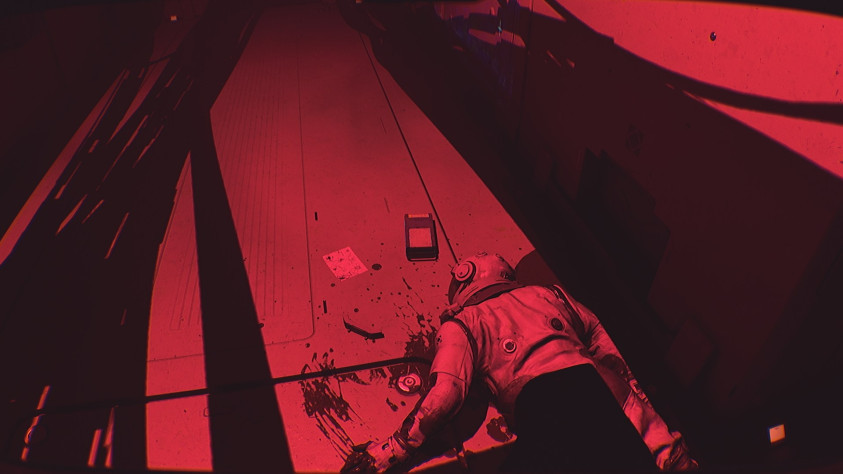 А ещё, как я уже писал, нужно прятаться или убегать от противников. Их два вида. Первые — роботы, которые, как и андроиды в Alien: Isolation, становятся агрессивными и начинают нападать на людей. В них можно даже стрелять из ИПК — пара попаданий на время их обесточит. Процесс стрельбы, естественно, максимально неудобный. Железяки довольно глупы, от них проще убегать. И если даже их на уровне двое, то активен может быть только один — этим надо пользоваться.