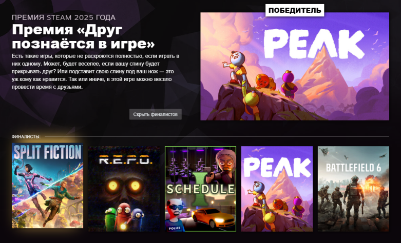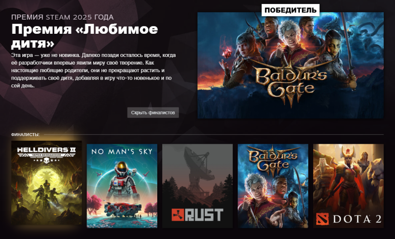 Valve подвела итоги «Премии Steam 2025» — нет, победила не Clair Obscur: Expedition 33