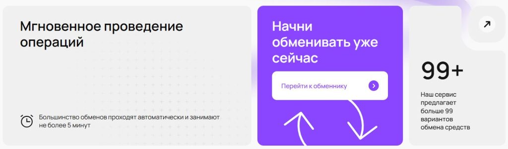 Сервис поддерживает работу с рядом популярных криптовалют, включая наиболее востребованные цифровые активы и стейблкоины. Обменные операции, как заявляет платформа, выполняются в сжатые сроки, что особенно актуально в условиях волатильного рынка, где скорость может играть ключевую роль.